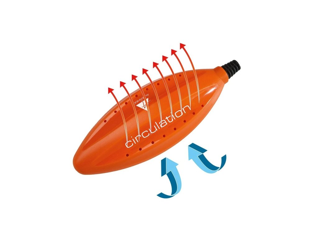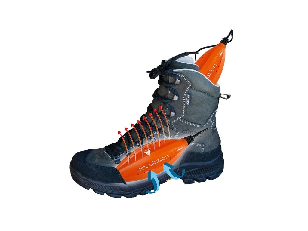 AlpenHeat Circulation AD20 je malé kompaktní zařízení, které se pomocí teplého vzduchu postará o příjemné klima v obuvi. Vysoušeč a vyhřívač AlpenHeat Circulation funguje na bázi cirkulace teplého vzduchu (bez použití ventilátoru). Studený vzduch je nasáván ve spodní části tělesa a po ohřátí uvnitř přístroje na teplotu přibližně 30°C je tlakem přes vrchní otvory vypouštěn opět ven. Díky UV záření navíc zbaví boty množících se bakterií a tím i zápachu a zdraví škodlivého prostředí.