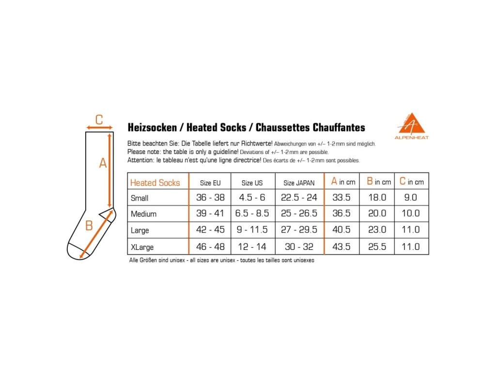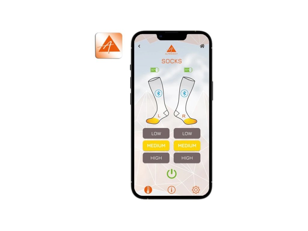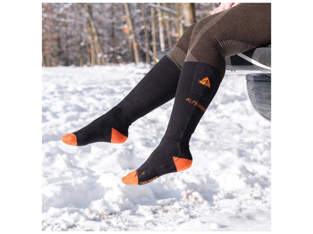 Alpenheat FIRE-SOCKS AJ26 vyhřívané ponožky jsou příjemně teplé a extrémně pohodlné. Vyhřívací vlákno vložené pod prsty poskytuje teplo po dobu 3,5 až 10 hodin v závislosti na zvolené úrovni vyhřívání. Teplotní úroveň lze snadno ovládat pomocí aplikace v mobilním telefonu.