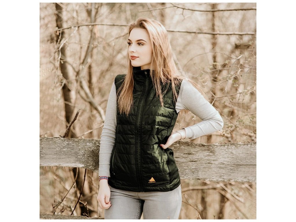 Prošívaná vyhřívaná vesta z odolného materiálu s vyhřívacím systémem v oblasti zad a dobou výhřevu až 7,5 hodiny. Unisex, 4 úrovně výhřevu.