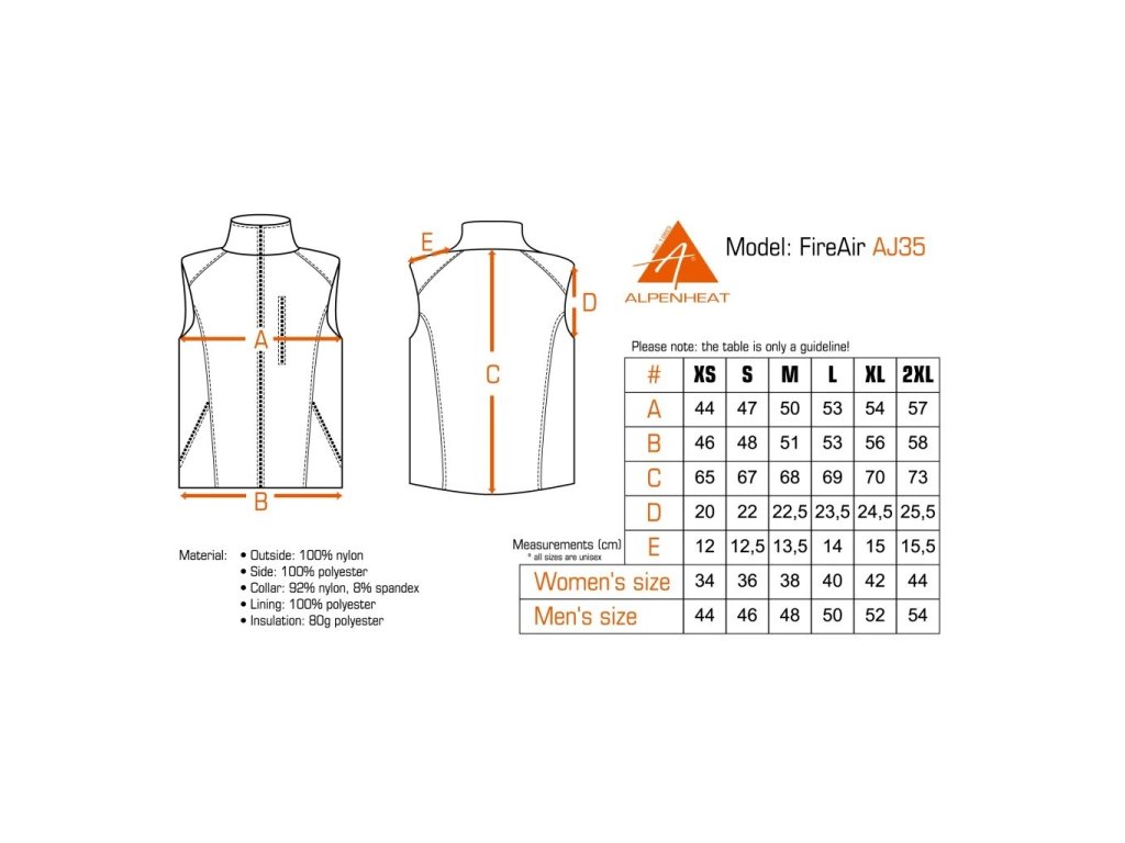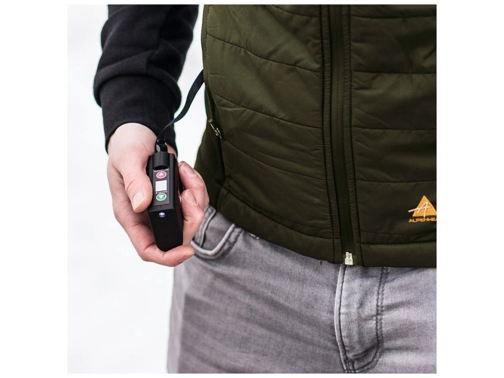 Alpenheat FireAir vyhřívaná vesta má 4 teplotní úrovně a speciální vytápěcí systém vyrobený z biotermálních vláken, který je umístěn na zadní straně vesty. Nošení vesty je velmi pohodlné, vyhřívací prvek je téměř nenahmatatelný.