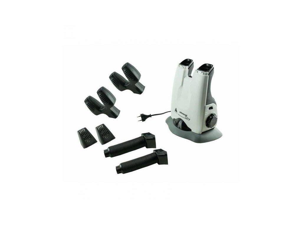 Suché boty po jakékoliv aktivitě už nebude žádný problém. Díky vysoušeči AlpenHeat UniversalDry a jeho třem nástavcům se zbavíte vlhkosti až u dvou párů bot najednou. Kozačky, kotníkové boty, pohorky lyžáky nebo rukavice - flexibilní nástavce zvládnou jakoukoli výšku bot i doplňků. O naprosté sucho se postará tichý, ale výkonný ventilátor za pomoci silného proudu teplého vzduchu. Ten může proudit nepřetržitě nebo po zvolenou dobu až 3 hodin s možnosti nastavení dvou různých teplotních programů.