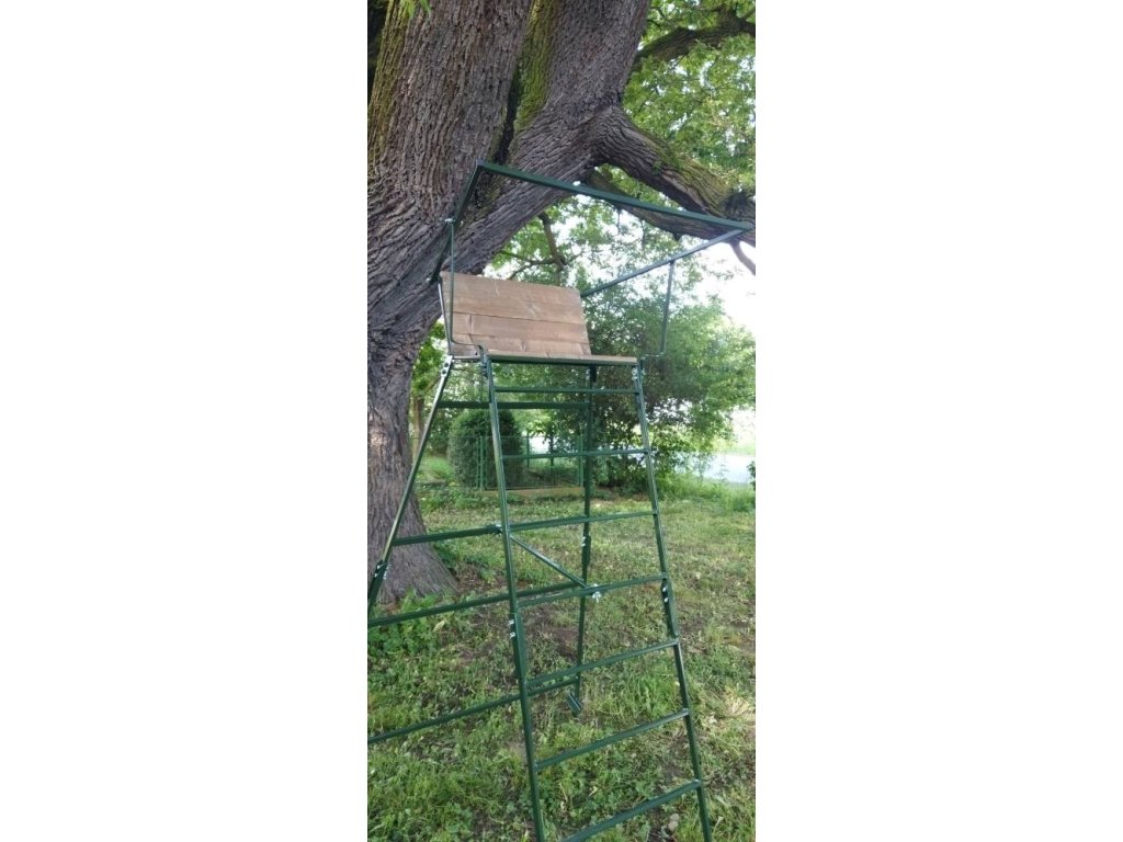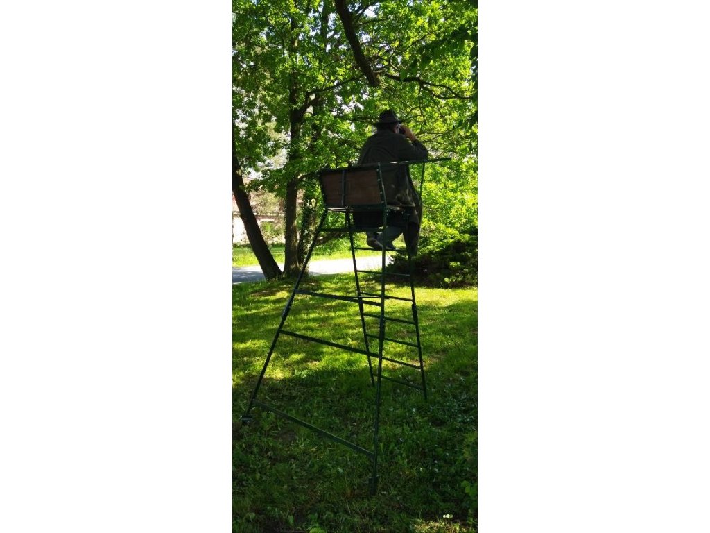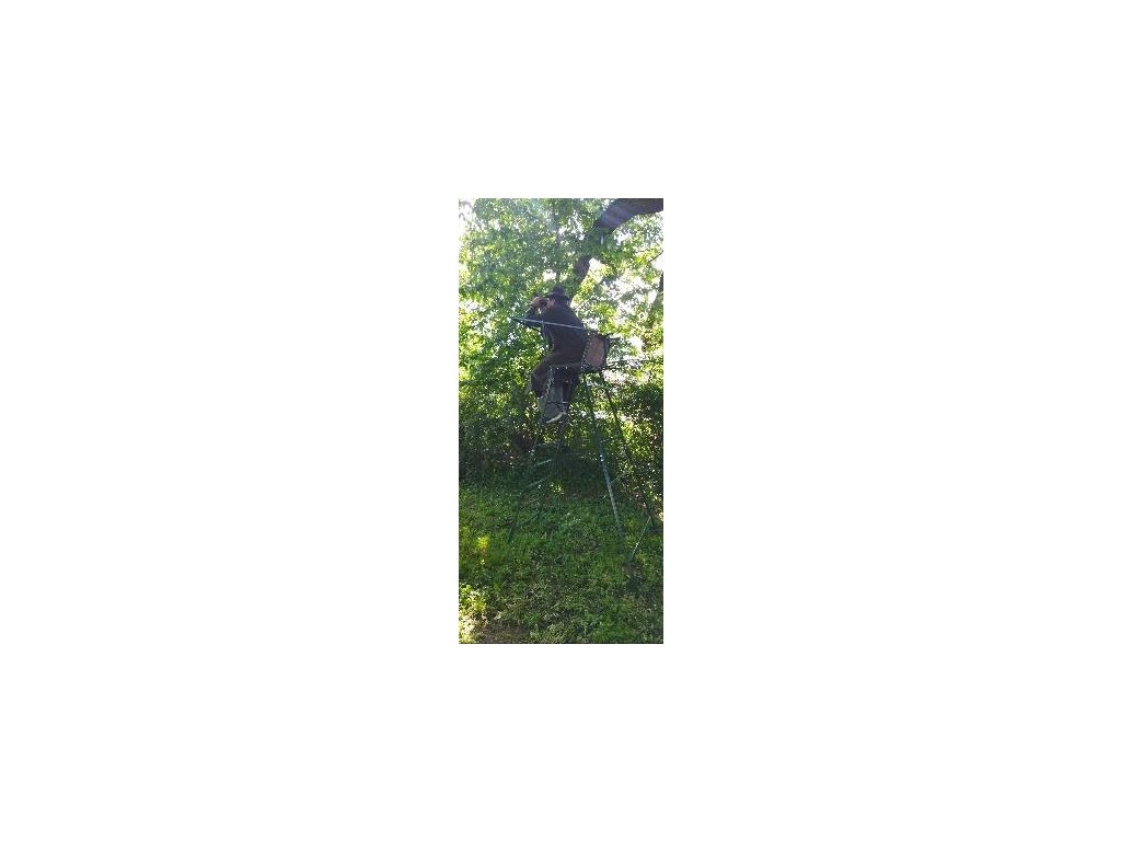 - Výška sedačky od země je 215cm, výška střelecké opěrky nastavitelná od 260 do 275cm