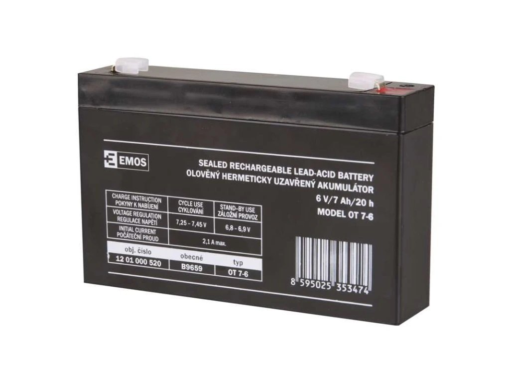 Bezúdržbový 6V akumulátor Emos, určený k pohonu krmných automatů a fotopastí .