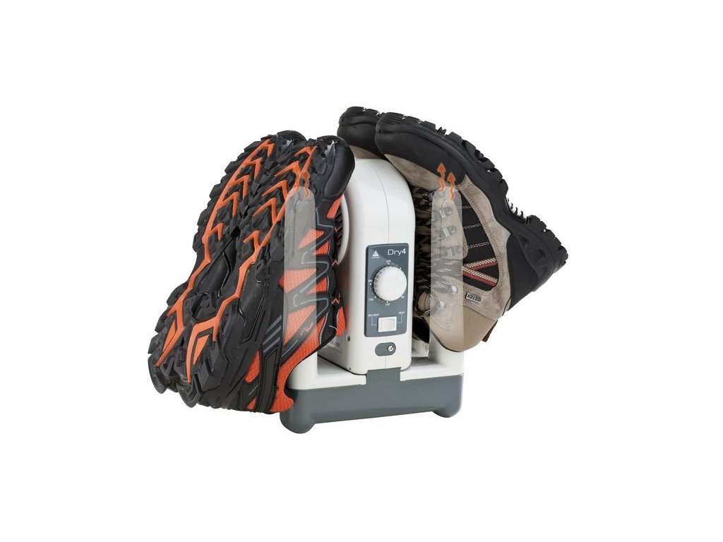 V zimě nebo létě je obuv zpocená nebo promočená deštěm či sněhem a toto vlhké počasí je živná půda pro plísně, spóry a škodlivé bakterie. S čtyřmi extra vysokými vzduchovými komorami Dry4 vysuší 4 předměty zároveň. Vysoký výkon, tichý rotační ventilátor může Vaši obuv či doplňky vysoušet ohřívaným či chladným vzduchem, při čemž dosahuje super rychlých výsledků. Najděte své vlastní využití pro Dry4 po celý rok po sportovních aktivitách, turistice, běhání, práci na zahradě, práci či čemkoliv jiném, kdy Vaše obuv nebo doplňky jsou promáčené deštěm či potem.
