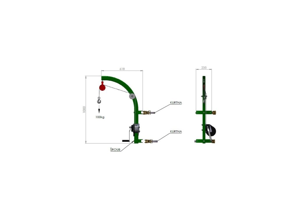 Materiál: kovová konstrukce s povrchovou úpravou, ocelové lano s navijákem