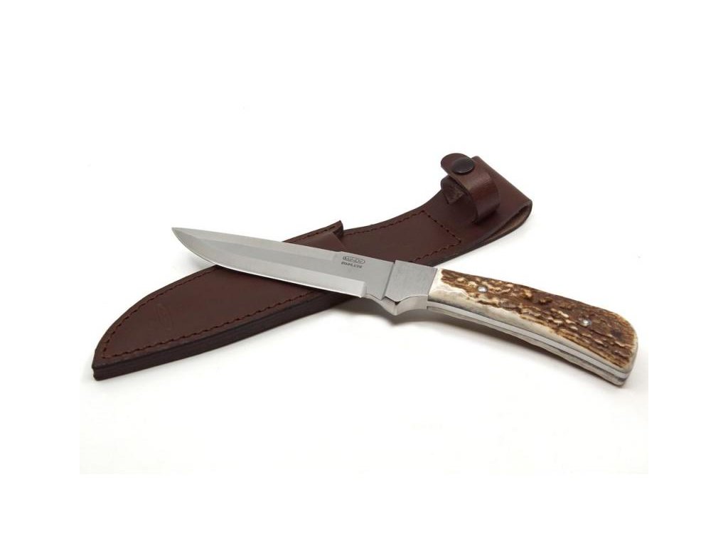 Střenky jsou vyrobené z pravého jeleního parohu a dávají tak loveckému noži LES robustní tvar.
