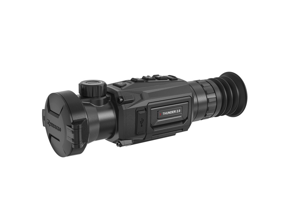 Termovizní předsádka Thunder 2.0. Čočka 50 mm. Optické zvětšení: 1x. Srnčí detekce 2 600 m. Displej OLED 1024x768 px. Jádro Hikmicro 640x512px 12μm VOx. Citlivost jádra:<20mk. Výdrž baterie až 6,5h. Váha: 530g. Vodotěsnost: IP67.