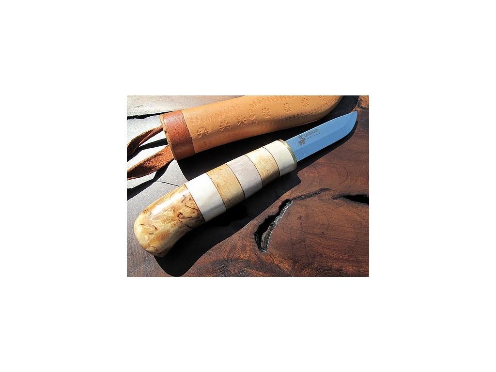Malé švédské město Karesuando (350 stálých obyvatel) ležící 250km severně od polárního kruhu je známé především výrobou těch nejkvalitnějších nožů. Švédské nože značky Karesuando jsou vyráběné pro použití ve velice tvrdých podmínkách severské tajgy. Při jejich výrobě se uplatňují tradiční ruční výrobní postupy a jsou používány ty nejkvalitnější materiály. U tohoto nože je čepel nerezová Sandvik 12C27, která je kalena na 57HRC. Na rukojeti je použita stabilizovaná horská kroucená bříza s bohatou kresbou. Jako doplněk je používán sobí paroh. Tento nůž je dodáván v koženém pouzdře z kvalitní 3mm hověziny s vložkou proti proříznutí pouzdra.