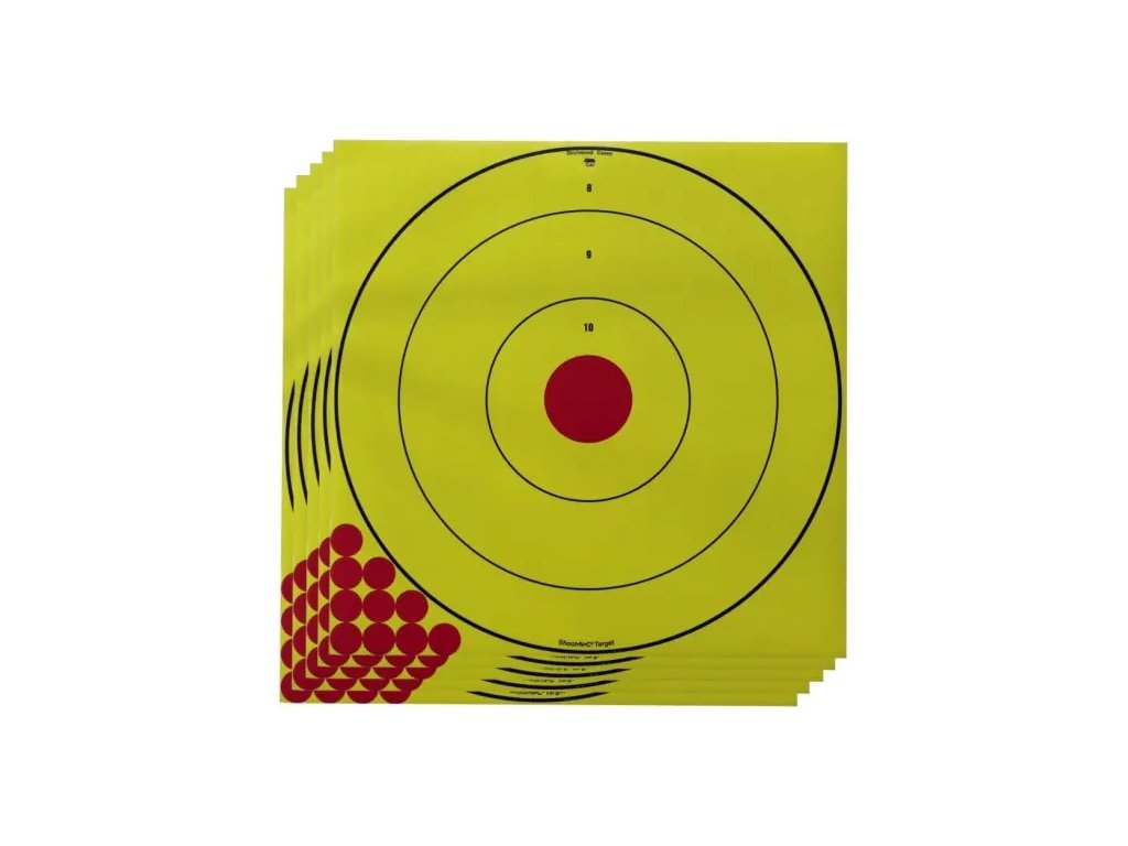Samolepicí terč Birchwood Casey pro střelbu na dlouhou vzdálenost. Vysoká viditelnost, barevná signalizace zásahu, červené a žluté záslepky v rozích. Rozměry terče 45 x 45 cm. Balení po 5 ks.