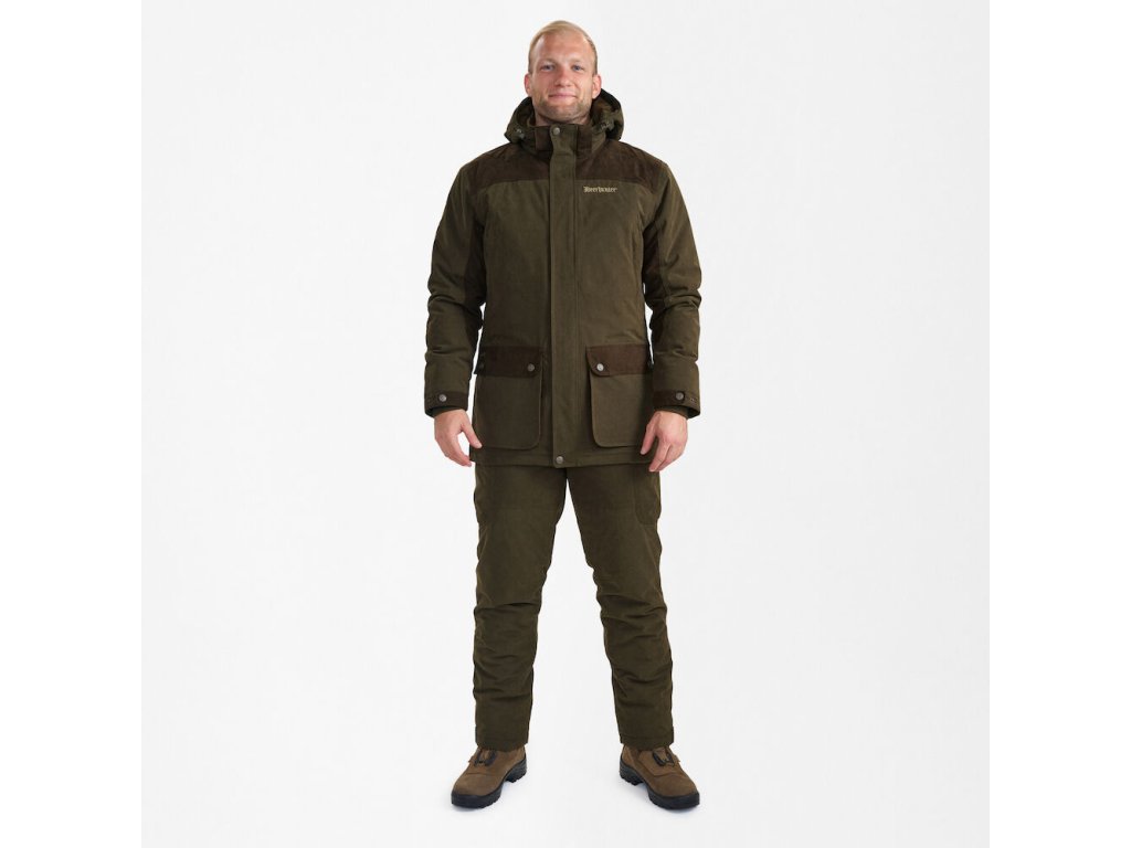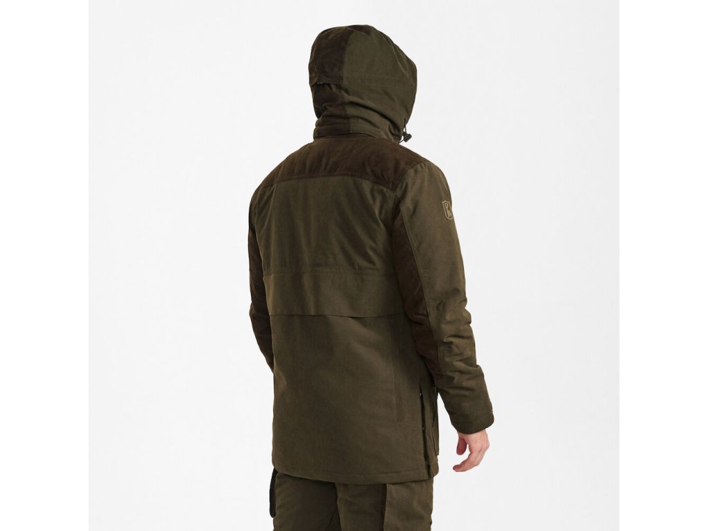 Zimní bunda Eagle, vyrobená pro chladné podmínky, v sobě spojuje klasický lovecký styl s moderním zateplením a praktičností. Je zateplená kombinací prodyšné síťoviny a prošívané podšívky, zároveň je i větruodolná a nepromokavá díky membráně Deer-Tex® Performance Shell, která zajišťuje příjemné vnitřní klima pro aktivního lovce za každého počasí. Detaily z umělého semiše umocňují klasický lovecký styl + odnímatelná kapuce se hodí k jakémukoli osobnímu stylu.