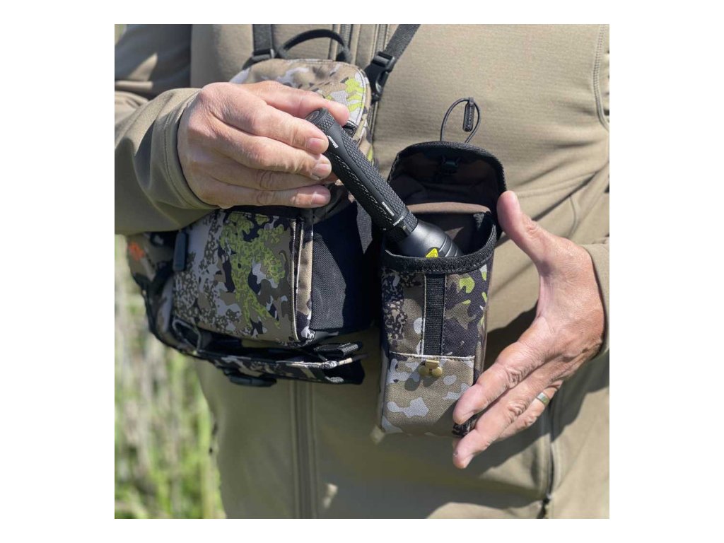 Dvě boční brašničky jsou díky svým kompaktním rozměrům ideální pro drobné vybavení, jako je větrovka, munice, psí píšťalka nebo svítilna. Tiše se uzavírají a lze je snadno připevnit ke křídlům postroje pomocí poutek Molle na zadní straně. Křídla jsou součástí setu.