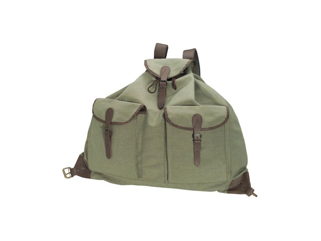 lovecká plachtovina (54% bavlna, 46% len) - velikost 65x55cm (šířka x výška) - 2 nebo 3 přední kapsy (podle přání zákazníka) - masivní nosné řemeny z hovězí kůže, stavitelná délka, podšití pěnovou gumou (protiskluzová úprava) - vnitřní nepromokavá vložka, snadno a rychle vyjímatelná kožené prvky (hovězí kůže) vyztužení spodních nosných rohů, uzavírací přezky Materiálové provedení - kombinace kůže a textilu - 100% vodoodpudivá úprava