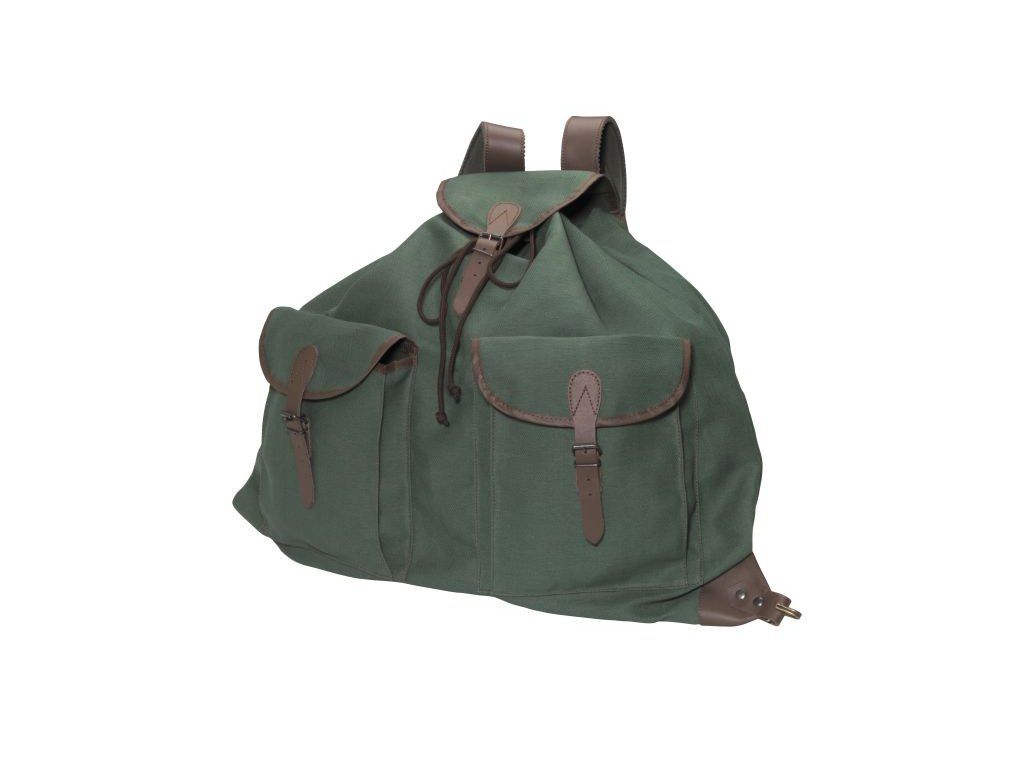 lovecké plátno (60% bavlna, 40% len) - velikost 65x55cm (šířka x výška) - 2 nebo 3 přední kapsy (podle přání zákazníka) - masivní nosné řemeny z hovězí kůže, stavitelná délka, podšití pěnovou gumou (protiskluzová úprava) - vnitřní nepromokavá vložka, snadno a rychle vyjímatelná kožené prvky (hovězí kůže) vyztužení spodních nosných rohů, uzavírací přezky Materiálové provedení - kombinace kůže a textilu - 100% vodoodpudivá úprava