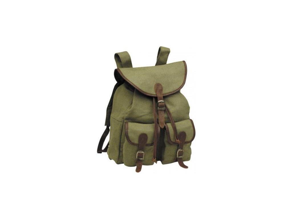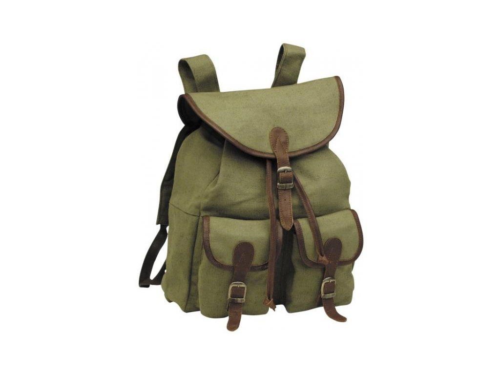 Ségl (56% bavlna, 44% juta) + kožené prvky - nosné řemeny, lemování víka ruksaku a kapes, přezky Materiálové provedení - kombinace kůže a textilu. 100% vodoodpudivá úprava !