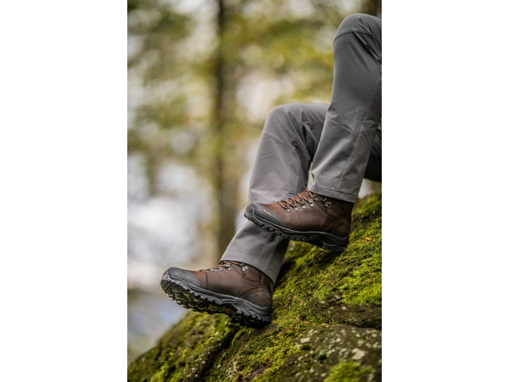 Vynikající, pohodlná a odolná univerzální bota, která vás provede mokrem i suchem po mnoho let. Vyrobena z voskované nubukové usně pro větší odolnost. Membrána GORE-TEX® zajistí 100% nepromokavost a dobrou prodyšnost. Natažená pryžová obsázka v přední části, která lépe odolává nárazům a otřesům.