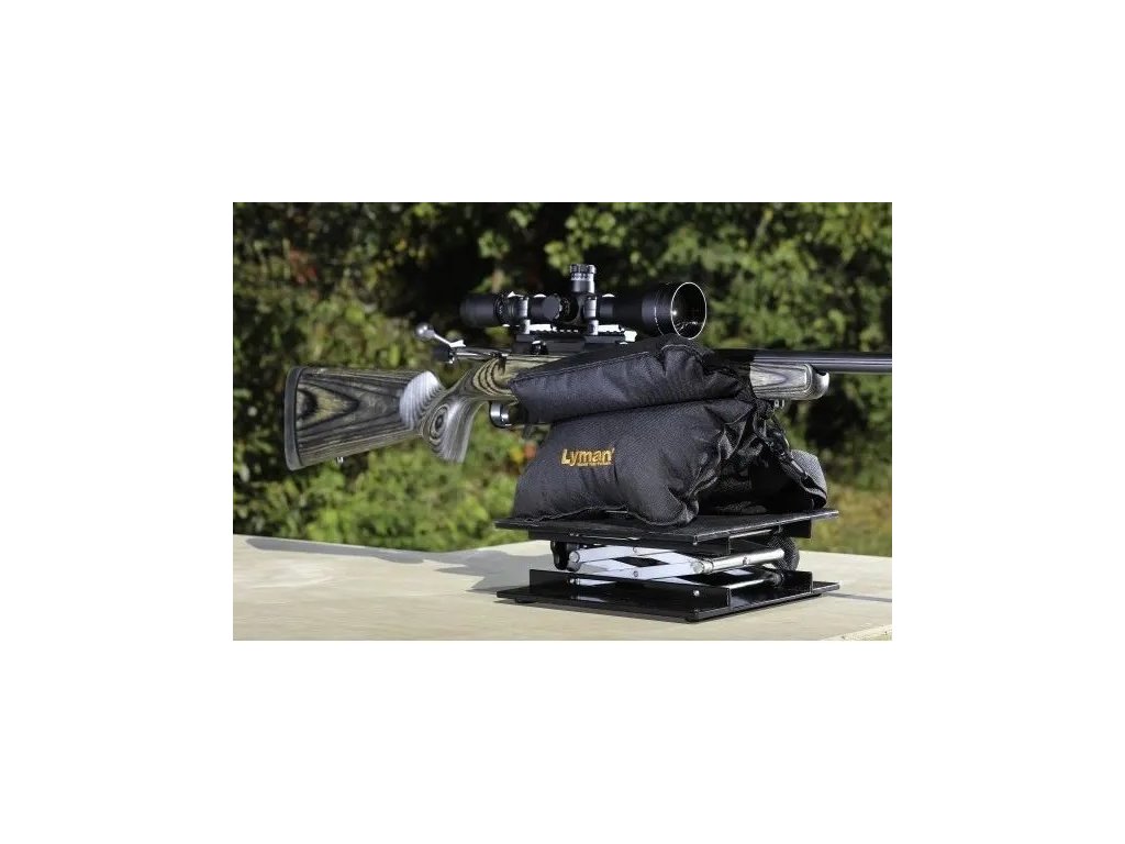 Výškově nastavitelná podložka Lyman Bag Jack pod střelecké vaky.