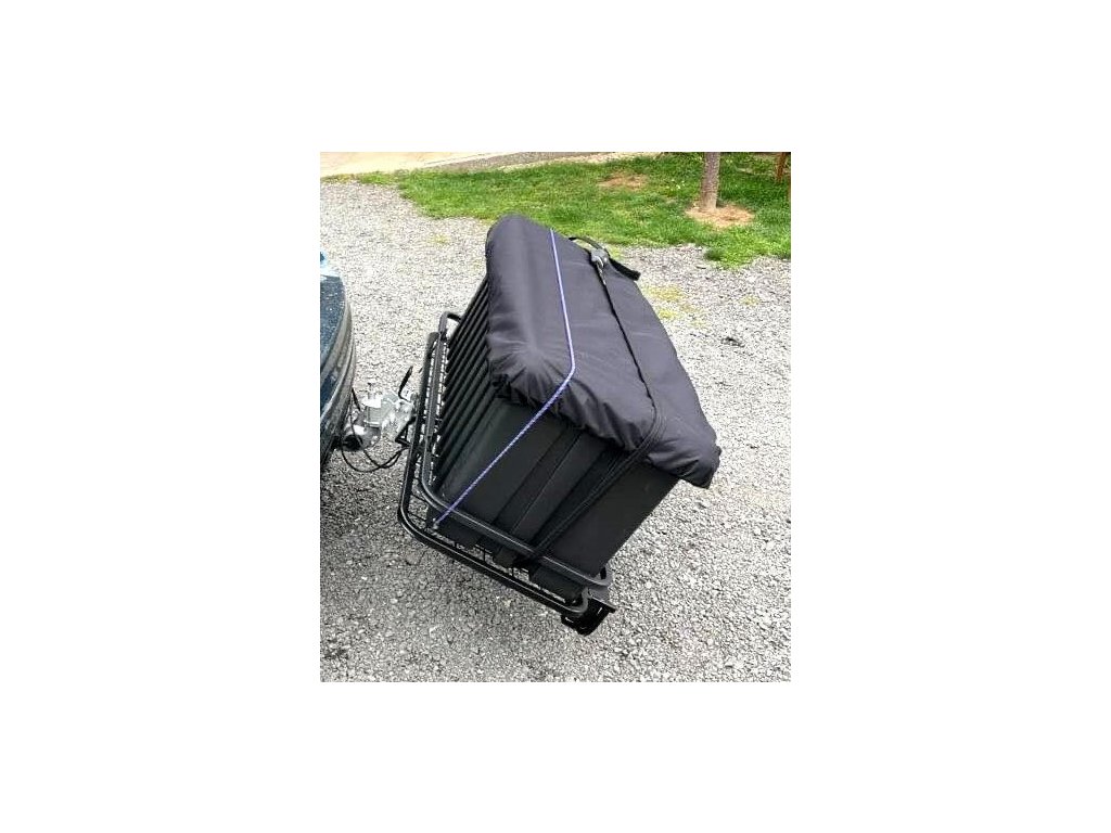 Nabízíme Vám příslušenství pro naše přepravní boxy (obě velikosti) - nepromokavý převlečník ze silného impregnovaného materiálu s nastavitelnou délkou obvodového gumolana (stačí lano povytáhnout ze švu a udělat suk dle potřeby).
