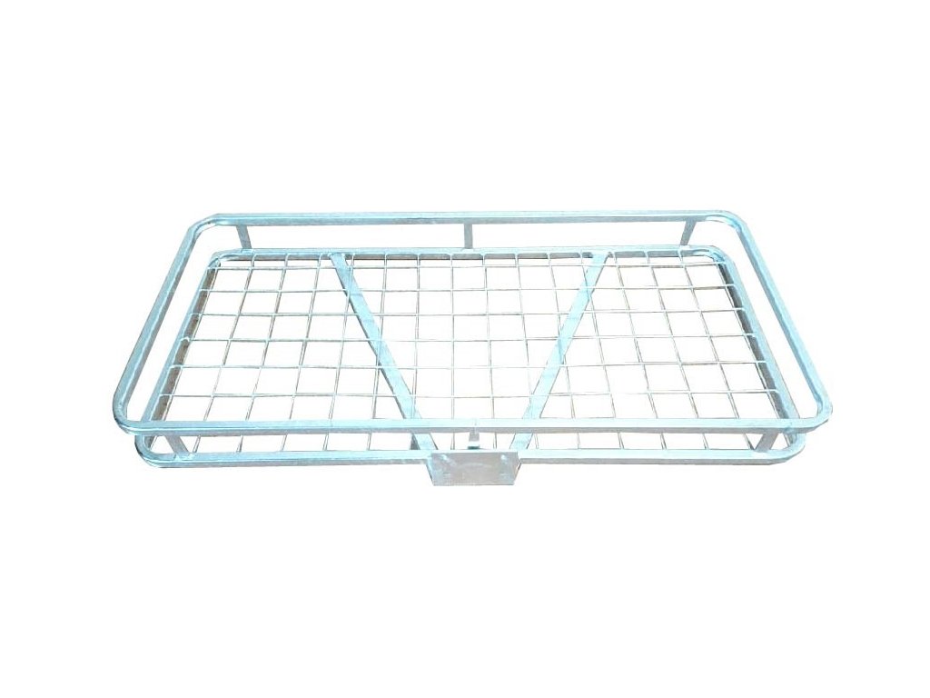 Novější typ koše, který lze kombinovat se všemi typy hlavic. Cena je za koš bez hlavice. Nosič na tažné zařízení je vyroben z jeklu 20x20mm bez přerušení Síťovina je zde z ok velikosti 7x7 cm. Rozměr koše 1200x600x130mm.