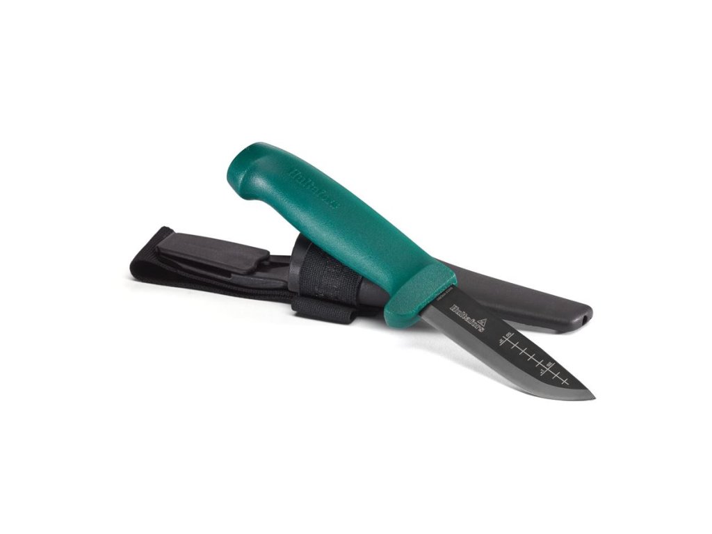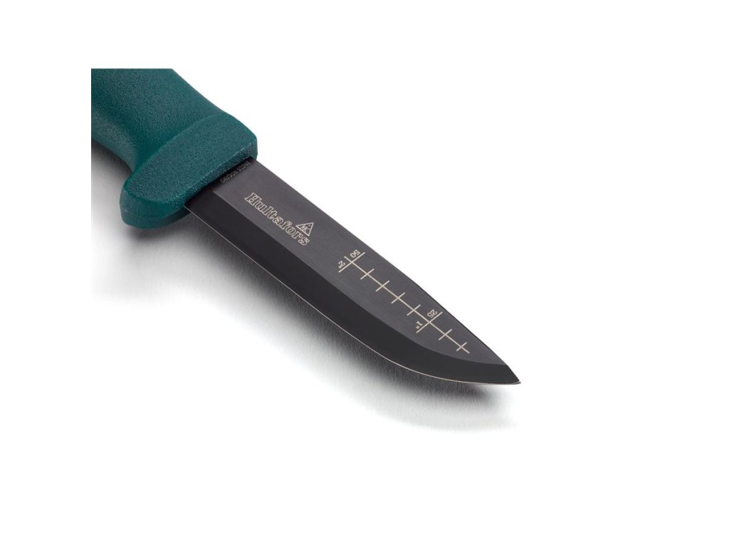 Outdoorový nůž Hultafors OK1 je navržen pro náročné outdoorové aktivity, kde je potřeba odolný a spolehlivý nástroj. Tento nůž je ideální pro práci s dřevem, jako je vyřezávání nebo štípání, ale zvládne i jemné úkoly. Je vybaven čepelí se skandinávským výbrusem, která je vyrobena z japonské uhlíkové oceli SK5, zakalené na tvrdost 58–60 HRC. Čepel je opatřena antikorozním povlakem elektroforetickou depozicí (EPD), což zajišťuje ochranu proti rezivění.