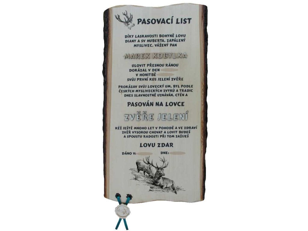Pasovací list jelen č.733 na desce s kůrou 3D