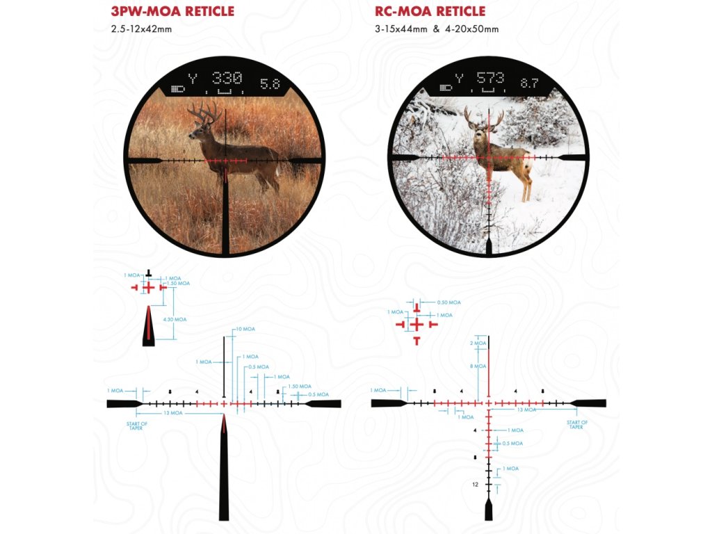 Eliminujte problém kompenzace poklesu střely s přepracovaným puškohledem Veracity PH 4-20x50 mm, který je vybaven novou osvětlenou osnovou Rapid Cross MOA a vylepšeným optickým systémem ze skla ED.