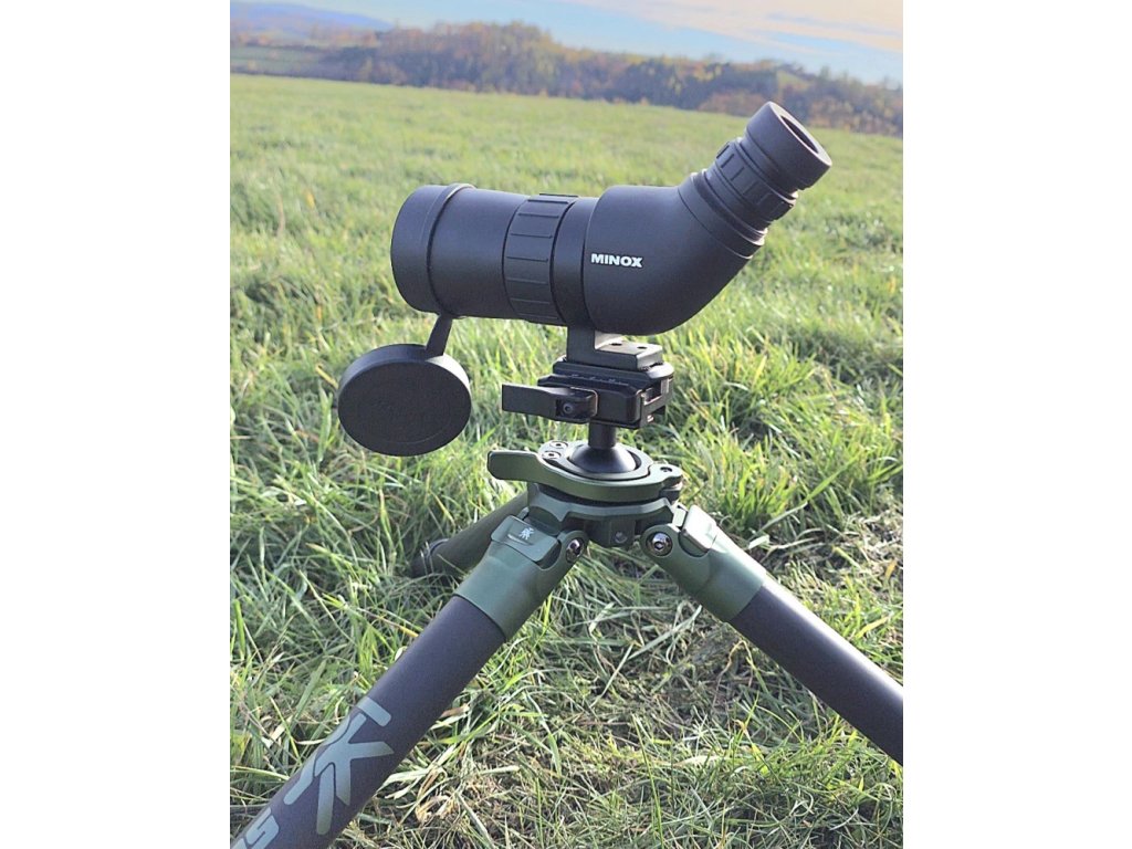 Současně však bylo nutností, aby tripod měl kulovou hlavu pro velmi rychlé nastavení roviny. Tuto vychytávku ocení každý lovec nebo pozorovatel se spektivem, který se pohybuje v nerovném terénu.