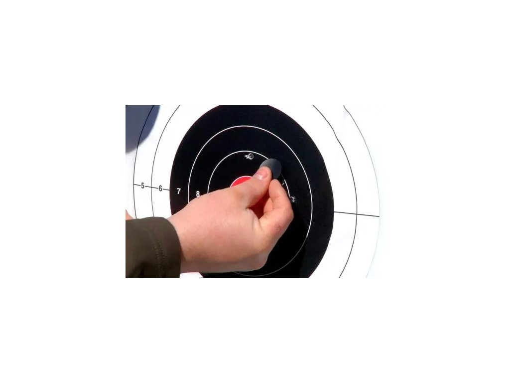 Samolepící papírový terč se záslepkami. Díky samolepicí zadní straně přilne tento terč k jakémukoli hladkému povrchu bez nutnosti použití sešívačky nebo lepicí pásky, což oceníte zejména při střelbě v terénu nebo na nevybavených střelnicích. Navíc lze pomocí záslepek prodloužit životnost terče – můžete jimi zakrýt zásahy nebo je využít jako další místa k zamíření.