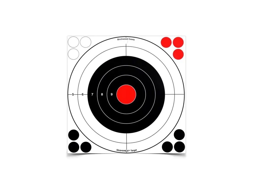 Samolepící papírový terč BIRCHWOOD CASEY se záslepkami v rozích. Rozměry 30 x 30 cm. Balení po 5 ks.
