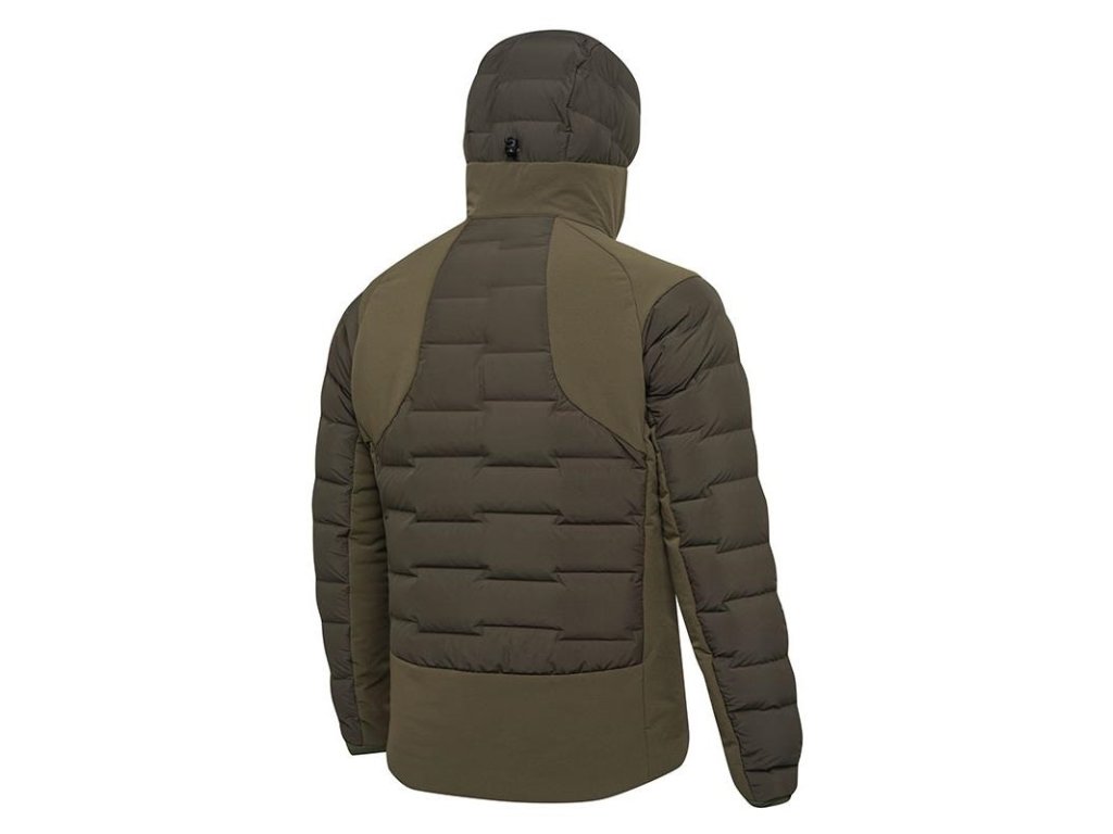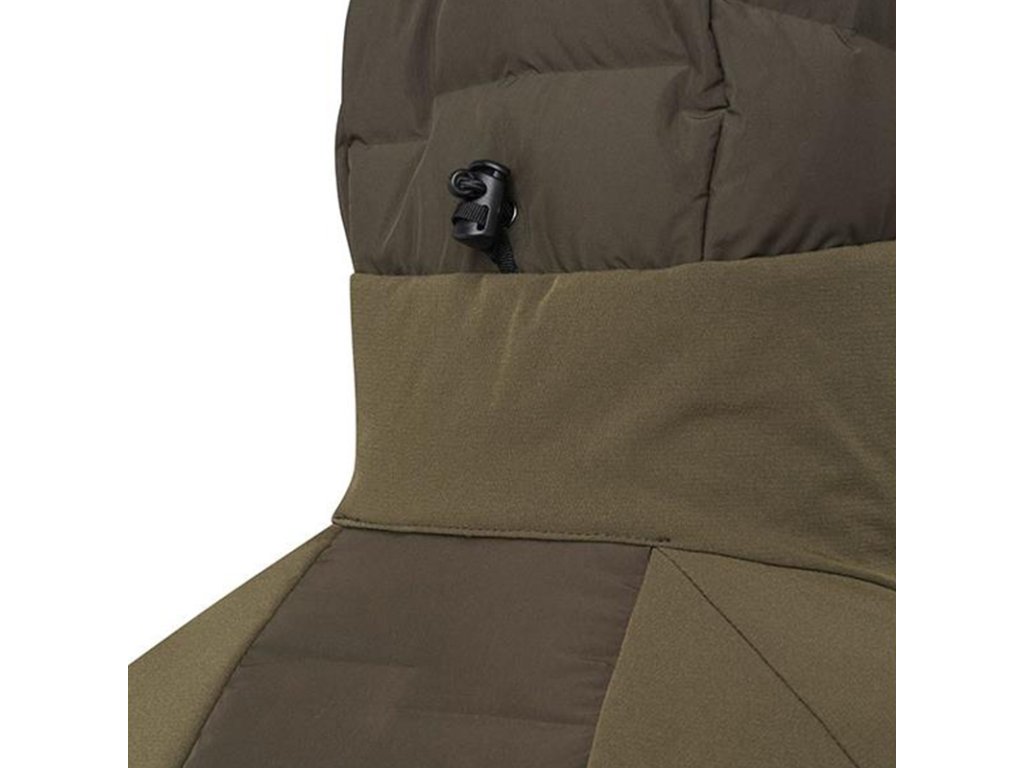 Vyrobena technologií mapování těla, která kombinuje husí peří a měkké a kompaktní polstrování. Husí peří na přední a zadní straně zajišťuje teplo a lehkost. Měkké a kompaktní polstrování na bocích a spodní části zaručuje maximální volnost pohybu. Vnější materiál je ošetřen úpravou DWR - Durable Water Repellent (odolná vodoodpu