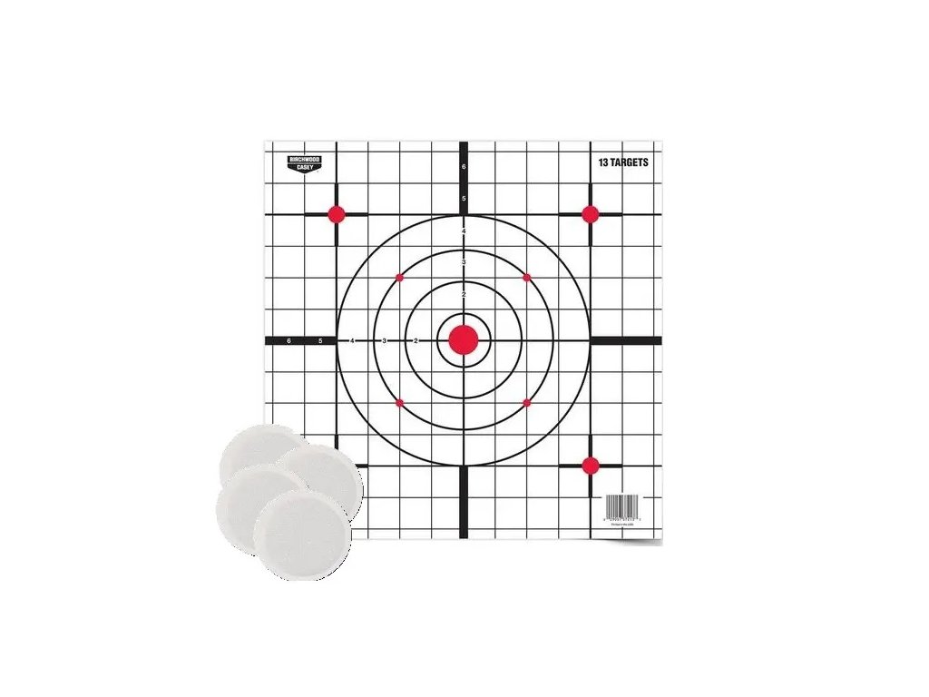 - 4 nastřelovací terče o rozměru 30,5 x 30,5 cm: Mřížkované provedení s výrazným středem pomáhá přesněji zacílit a provést jemné úpravy zaměřovače.