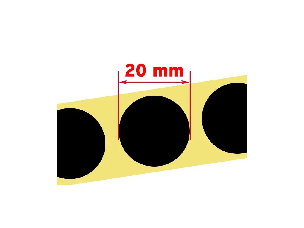 Kulaté samolepky pro opravu terče - černé, průměr 20 mm. Cena za roli s návinem 2000 ks zálepek.